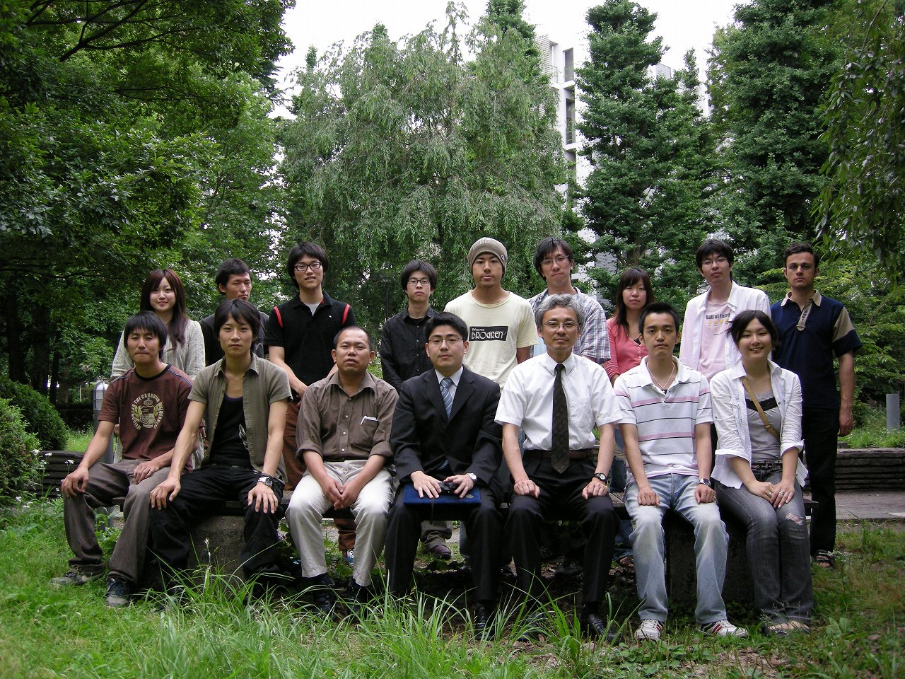 今日は山本さんの修了式でした.というわけで池の周りで集合写真を撮りました(写真1).梅雨にもかかわらず,晴れてくれてよかったです.カメラ3台を駆使しての,大撮影会となりました.
