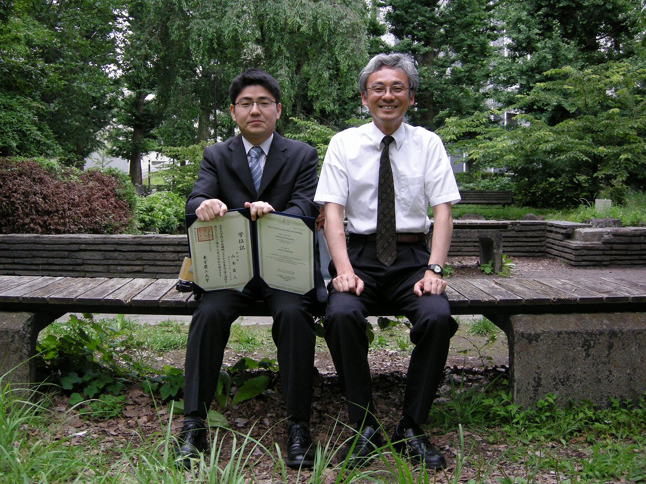 学位記の証書というものを初めて見させていただきましたが,英文版もあったりと,非常に重く感じられました.山本さん,ご卒業おめでとうございます.今月いっぱいで山本さんが研究室を旅立ってしまうのかと思うと,とても寂しいです.