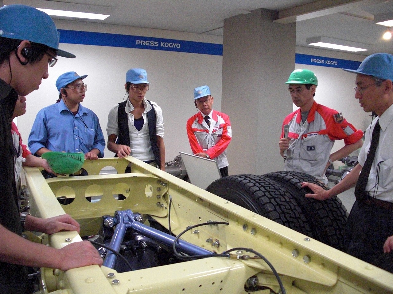 工場見学ではプレス金型の製作現場やアクスルのプレス,組み立て,溶接,塗装現場を見せていただきました.大きなプレス機が動いて部品が出来ていく様は圧巻でした.熱中しすぎて見学時間がオーバーしてしまうほどでした(笑)とても楽しかったです.ありがとうございました.