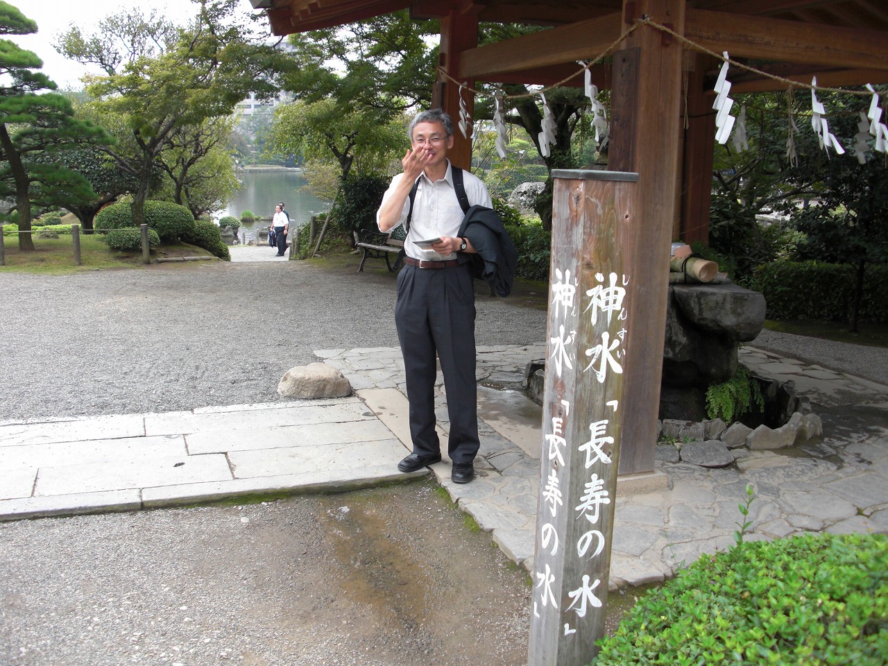 私は同行しておりませんので詳しいことはわかりませんが,S神氏,S藤氏の証言によれば,熊本ではだいぶ羽を広げたとか広げなかったとか・・・.講演の合間をぬって熊本城の歴史について勉強をしに行ったり(写真1),寿命を延ばしにいったり(写真5)したようです.
