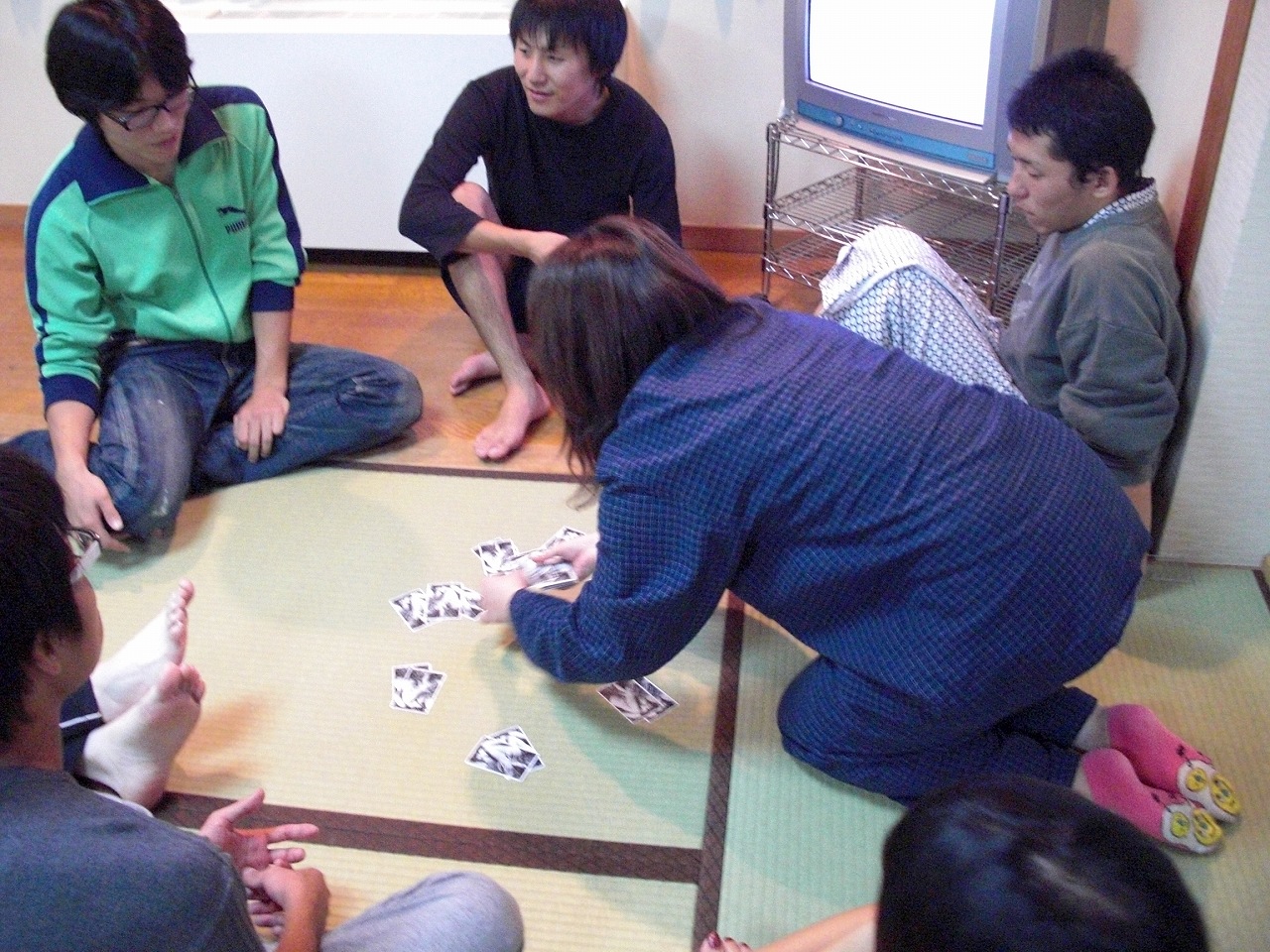 夜はプライドをかけたトランプ大会が催されました.敗者には人間の尊厳を引き裂かれるようなきつい罰ゲームが用意されておりました.何人かのプライドがずたずたになりました.
