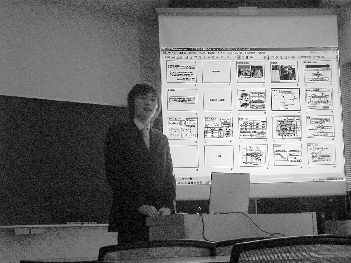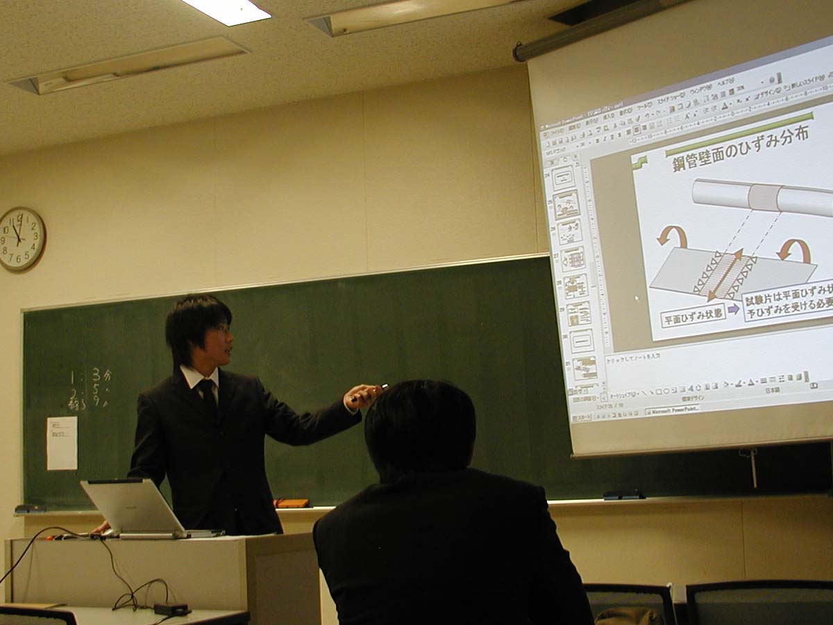熊野氏は卒論から数えて3年間の成果です.極薄銅合金の塑性変形特性についてソウカツを頂きました.一方,高田氏は試験機構想で紆余曲折しつつ短期での成果です.当研での金属の高温試験の先鞭をつけました.詳細は後ほど「研究テーマ」でUpします.